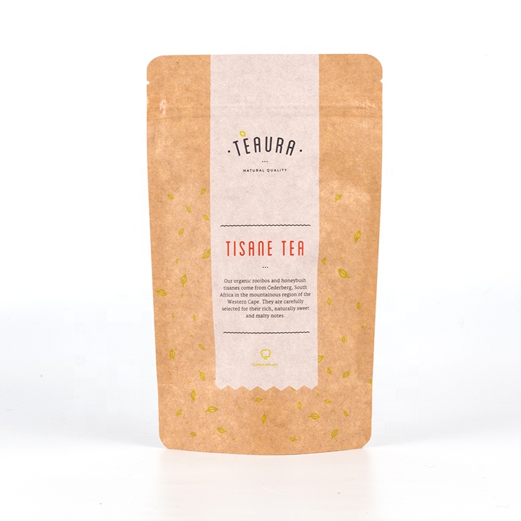 Les sacs debout imprimés sur mesure sont notre produit le plus vendu, une solution d'emballage élégante et polyvalente, idéale pour une variété de produits alimentaires et non alimentaires.Notre Sachets de thé recyclables à base de bio sont fabriqués à partir de matériaux sans danger pour les aliments et à base de plantes, papier kraft/ BioPE.Ces Sachets de thé personnalisés ont une protection barrière élevée contre l'eau, l'humidité et l'oxydation.